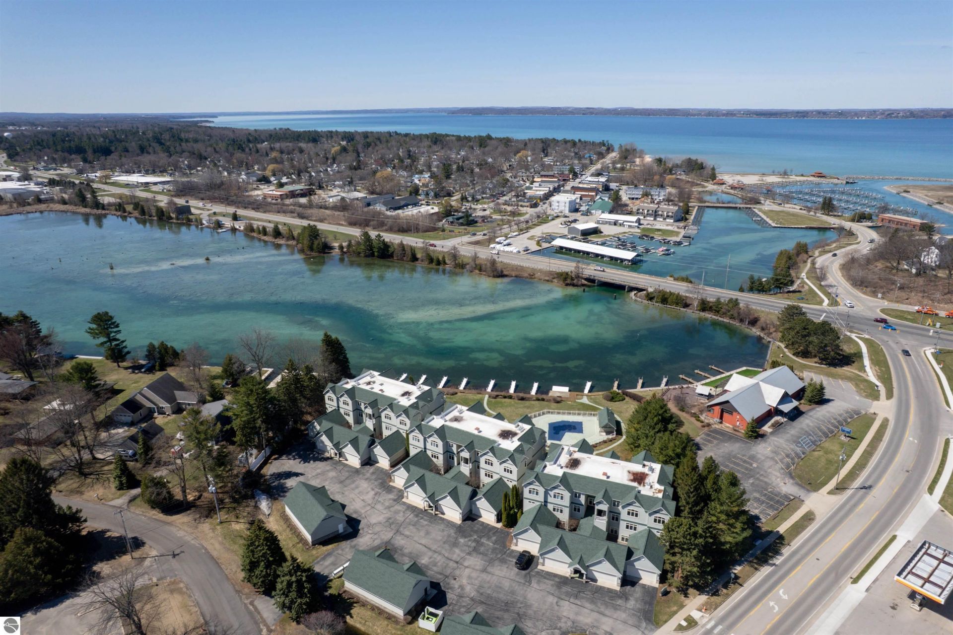 Fabulous Elk River waterfront condo living with beautifully appointed first floor unit located in the quaint waterside Village of Elk Rapids! This immaculate, turn-key condominium features a wonderful open floor plan with tasteful décor and thoughtful upgrades throughout. The inviting living room showcases a custom-designed fireplace, creating a warm and welcoming focal point for the space. The kitchen is equipped with Kenmore Elite appliances and a customized counter-height island that offers both functionality and comfortable seating for gathering and entertaining. The spacious primary bedroom offers peaceful water views along with direct access to the private patio, a large walk-in closet, and a spacious private bath. With its thoughtful layout and first-floor convenience, this home offers comfortable and easy waterfront living. Just steps from the in-ground pool and your private boat slip with direct access to Elk Lake, Torch Lake, and the entire Chain of Lakes, making boating, kayaking, and paddleboarding effortless. Located near the charming shops, restaurants, and beaches of downtown Elk Rapids, this is a wonderful opportunity to enjoy Northern Michigan waterfront living. Click on virtual tour link for an incredibly realistic view of the interior!