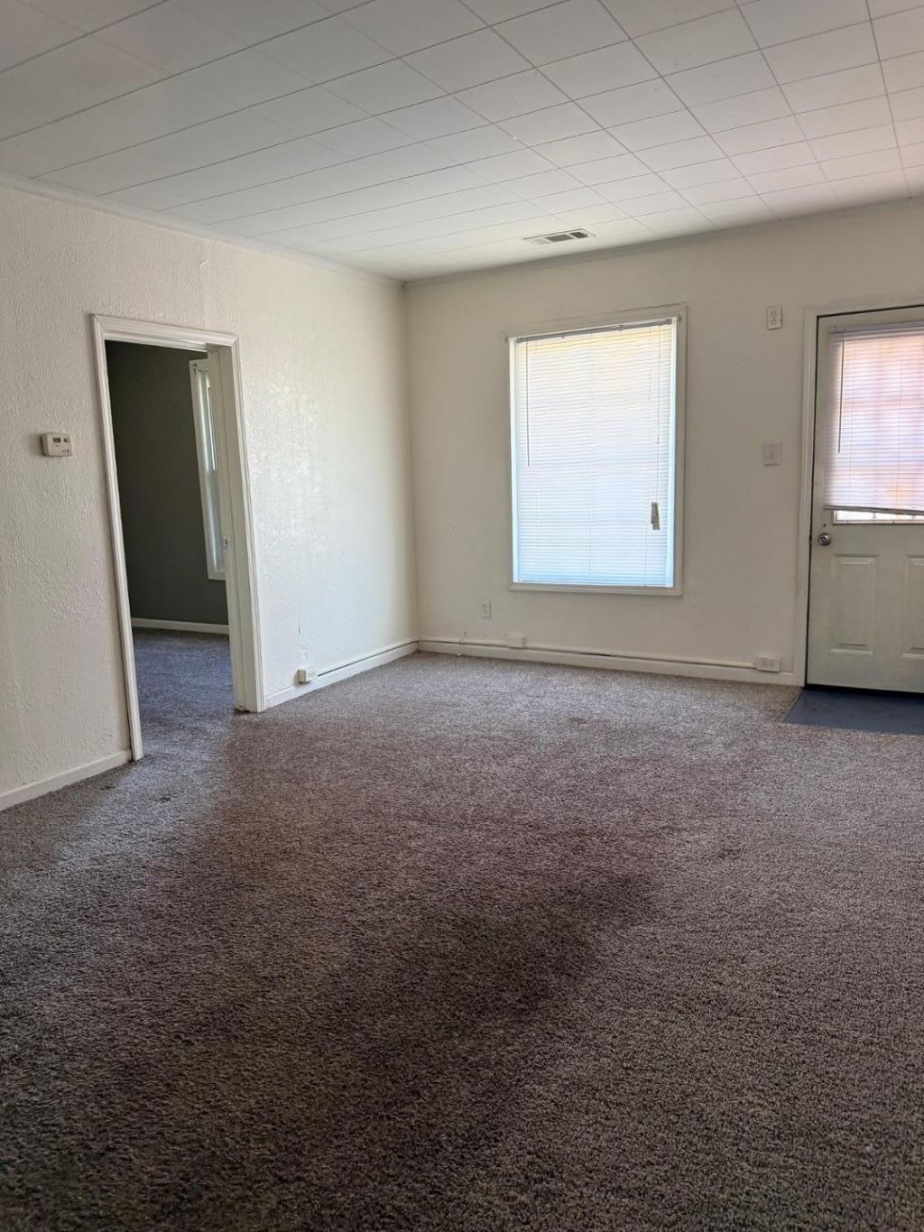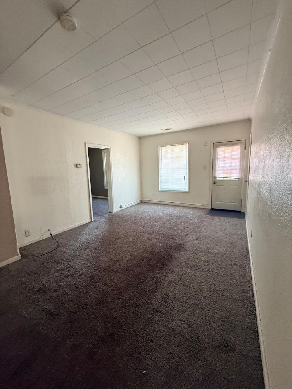 Private entry upper level 2 bedroom one 1 bath unit. Features huge living room dining room combo bigger kitchen with counter space includes refrigerator, gas range and stackable washer dryer in unit.